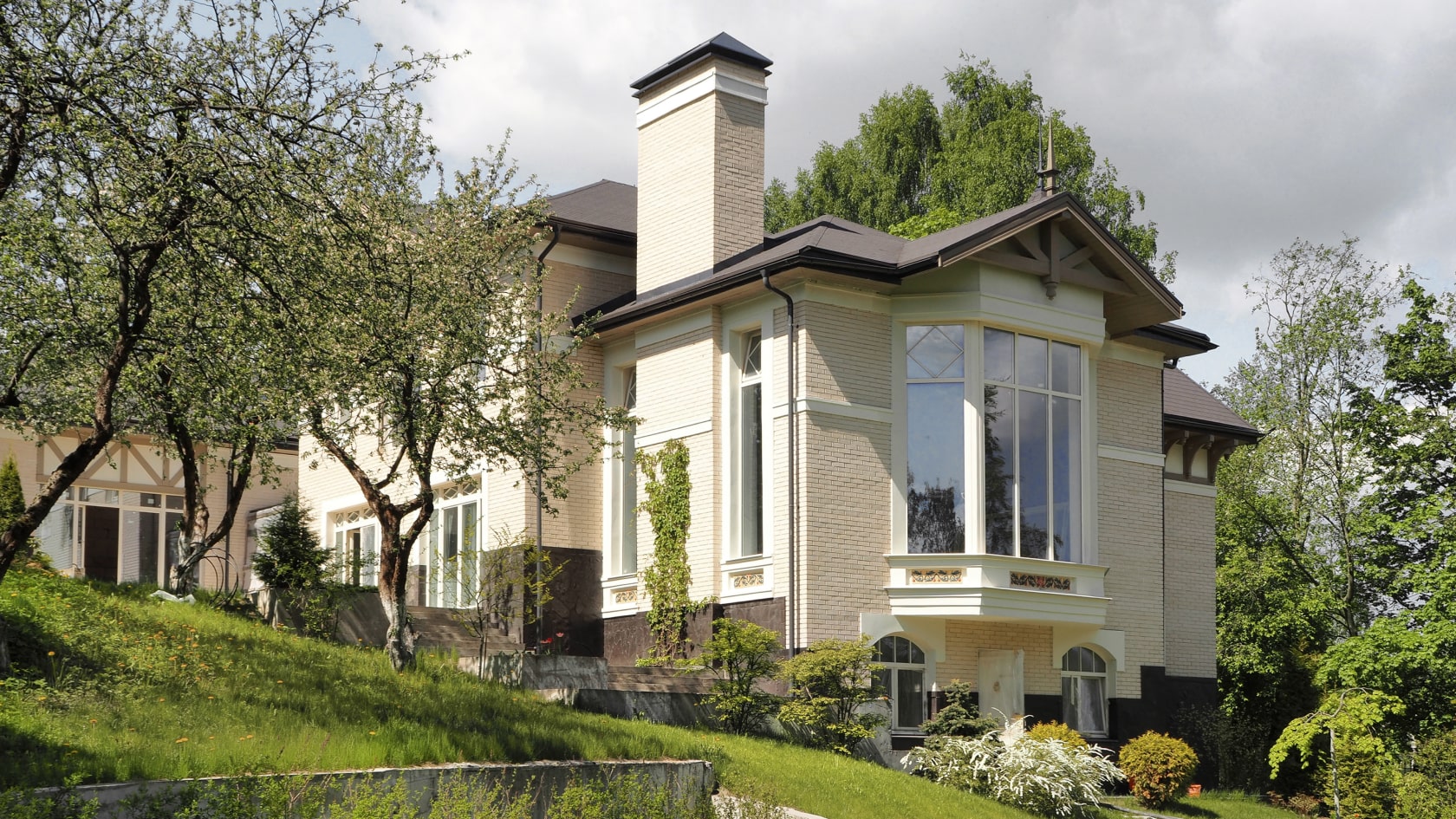 История места, большая вода, всегда разная по состоянию в зависимости от времени года, времени суток, яблони, посаженные в середине прошлого века, выразительный рельеф с перепадом высот порядка пяти метров, определили образ дома, сложную многоуровневую композицию и обращенность парадных и приватных помещений. Эркер двухсветной гостиной и окна кабинета, расположенного в башне, выходят на озеро, а витражи кухни-столовой, оранжереи, бассейна, мастер-спальни раскрыты в яблоневый сад. Майоликовые детали выполнены петербургскими художниками.